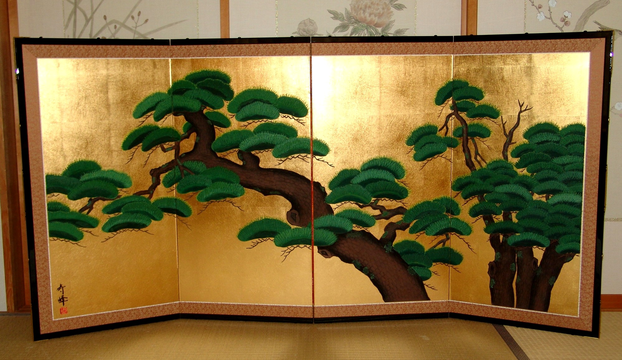 金屏風絵をクリックください。価格、詳細をご覧いただけます。